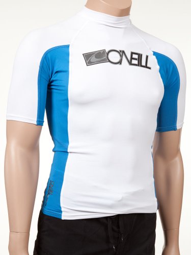 O'Neill Wetsuits Skins Short Sleeve Crew, White/BaliBlueeiBlue, X-Large Best